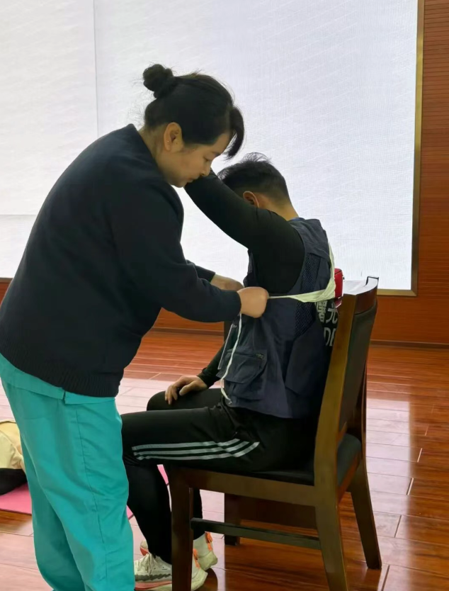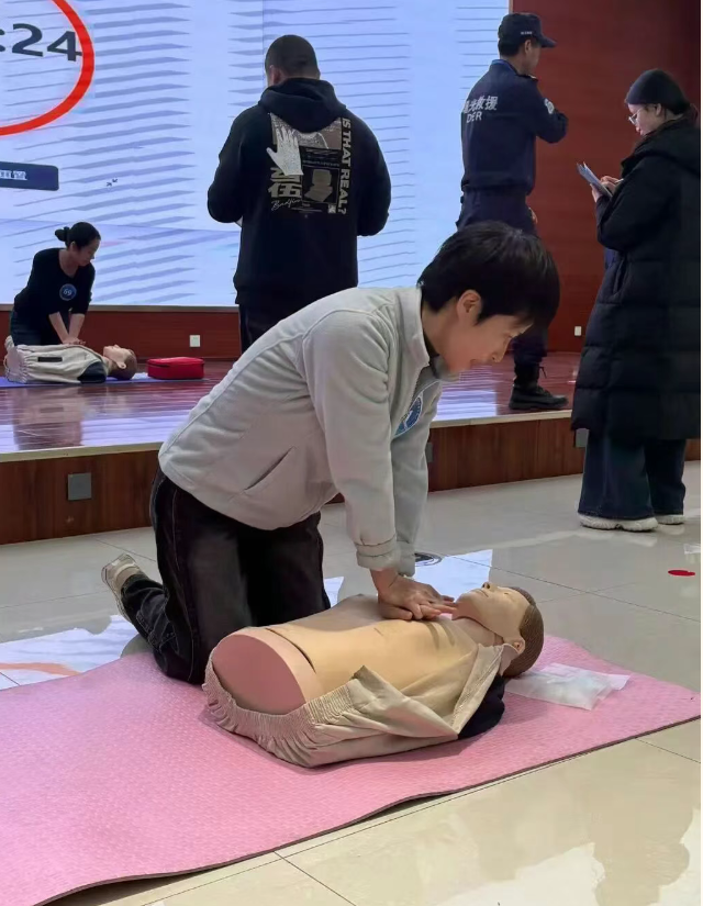 赛场上,莫瑛医师沉着冷静、精准操作,严格遵循急救规范完成心肺复苏、人工呼吸等关键环节,每一次按压的深度、每一次吹气的频率,都精准贴合急救标准。