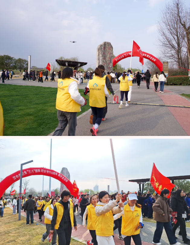 为纪念“三八”国际劳动妇女节116周年,充分展示新时代汉中女性昂扬向上、团结奋进的精神风貌,团结引领全市广大妇女为建设环境优美、绿色低碳、宜居宜游的生态城市,3月6日上午,由汉中市妇联、汉中市直机关工委、汉中市生态环境局、汉中市城市管理局、汉中市体育局、汉中市总工会、团市委、汉中市消防救援局、汉中市创文办主办,汉中市一江两岸管理委员会办公室协办的“礼赞天汉幸福园 巾帼阔步新征程”主题健步走活动在汉台区天汉湿地公园拉开帷幕。我院妇联受邀参与活动,不仅精心设置补给点提供贴心服务,更组织30余名女职工组成代表队参加健步走,用脚步丈量春日美景,用行动彰显医者巾帼风采。