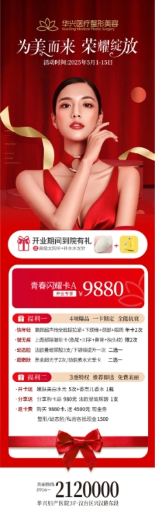 您所在的位置:主页 > 新闻资讯 > 最新活动 > 【为美而来 荣耀绽放】5月1日华兴医疗整形美容开业福利钜惠来袭,只等你来!