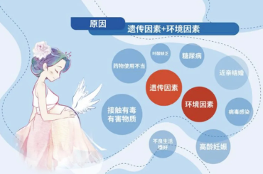 出生缺陷是指婴儿出生前发生的身体结构、功能或代谢异常。出生缺陷可由染色体畸变、基因突变等遗传因素或环境因素引起,也可由这两种因素交互作用或其他不明原因所致,通常包括先天畸形、染色体异常、遗传代谢性疾病、功能异常,如盲、聋和智力障碍等。